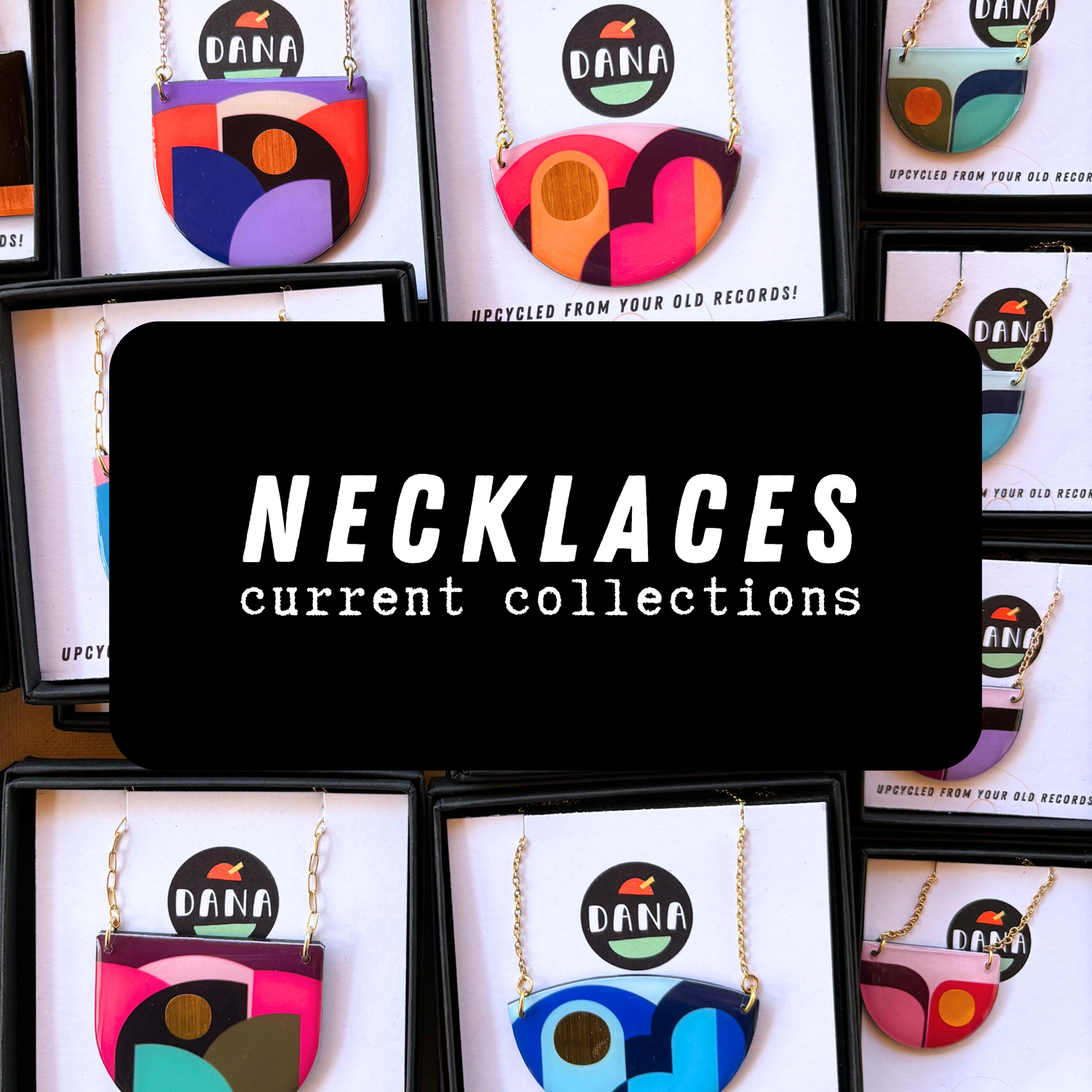 Eco conscious vinyl record necklaces by DANA Jewellery handmade in Ireland.