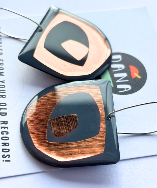 30% OFF Collage abstraction with a touch of copper / contemporary upcycled vinyl earrings