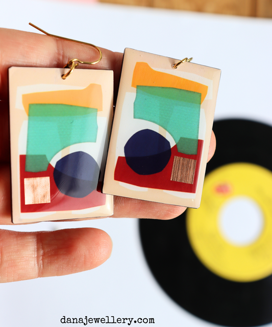 30% OFF Art on your ears / abstract contemporary upcycled vinyl record earrings