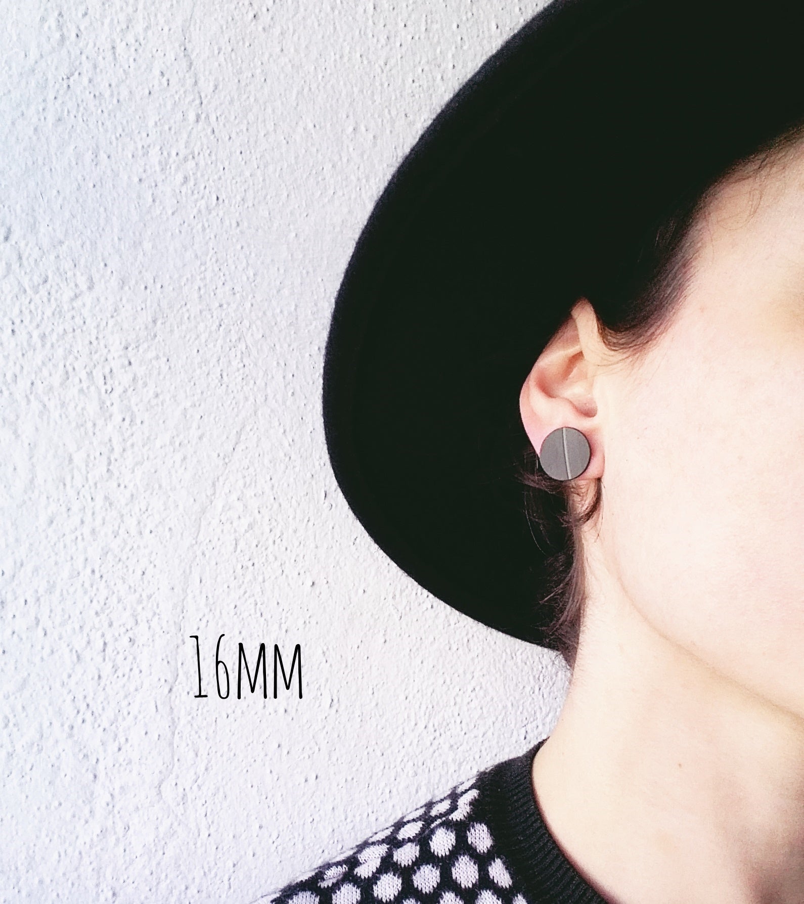 Unisex plain black flat vinyl record studs / 6 sizes
