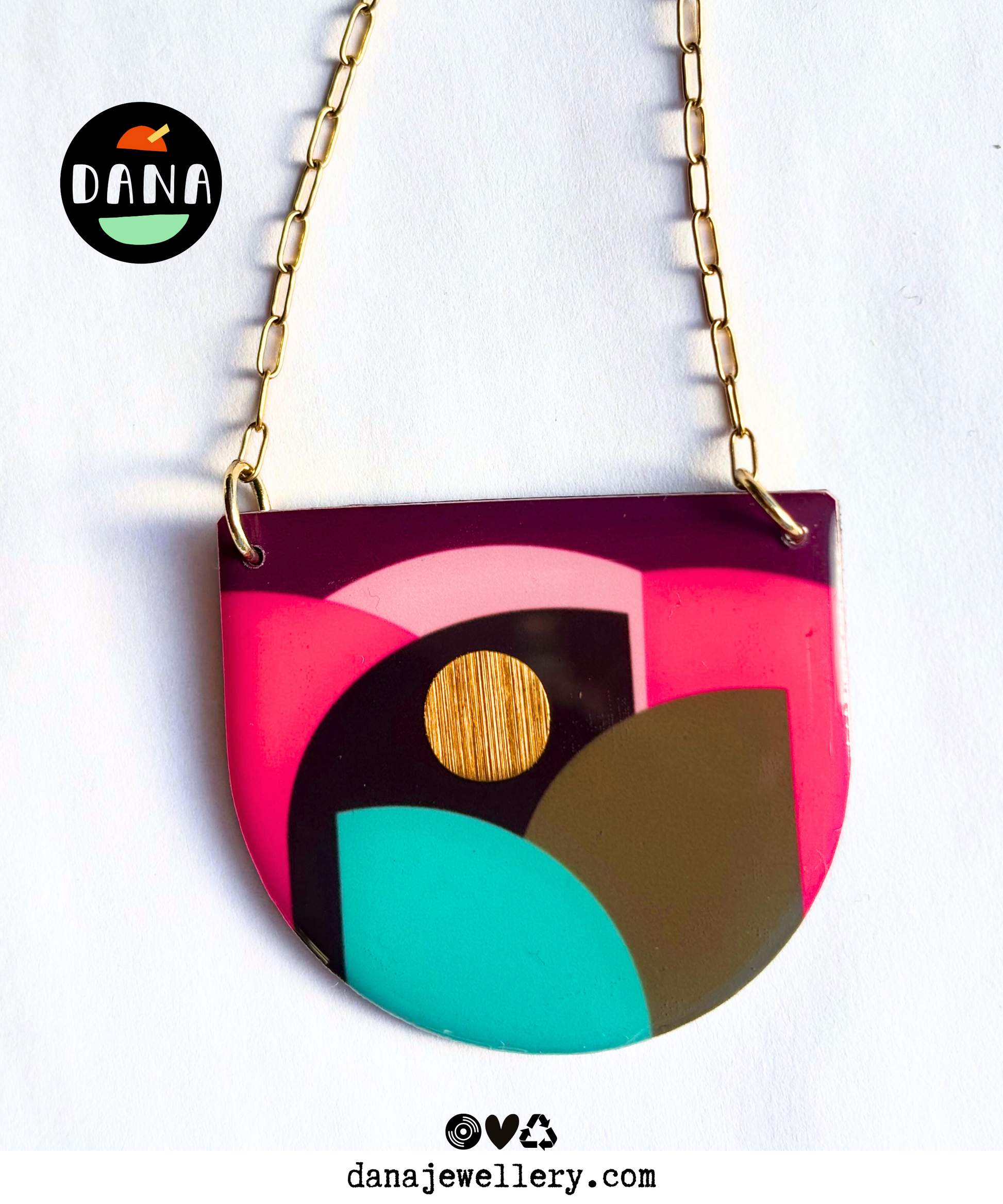 This necklace is a fab present for the vinyl enthusiast in your life, the lover of statement art jewellery or upcycled contemporary Irish jewellery design.