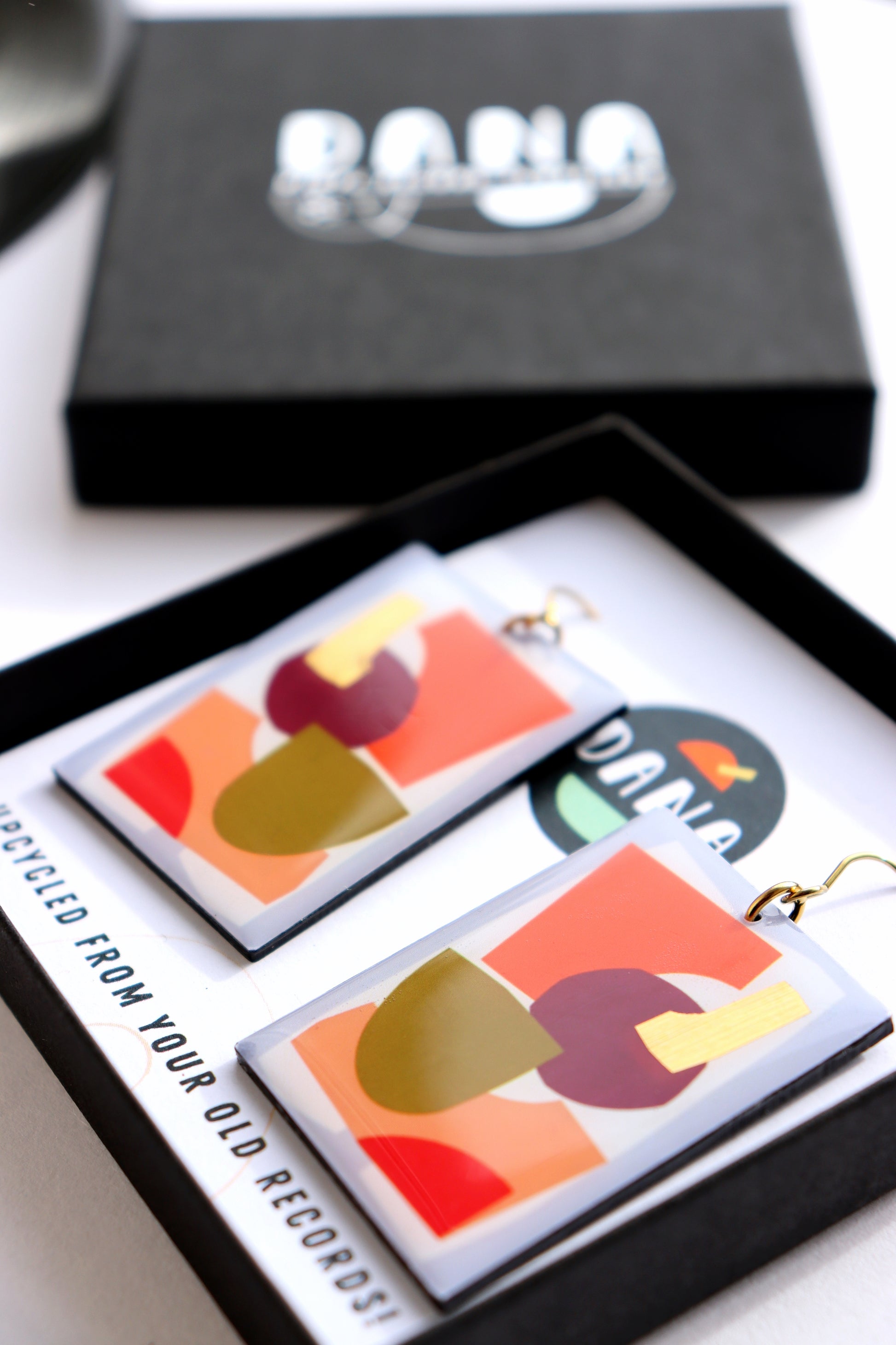 ▹admire the original vinyl record in all its groovy glory at the back of the earrings