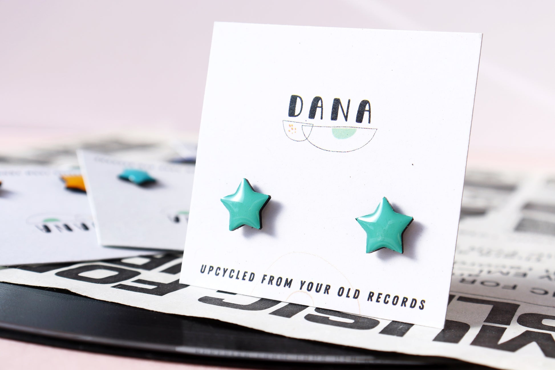 These cute upcycled vinyl record star studs are made from an old vinyl record that was headed for landfill and are available in 8 colours. They are a great present for vinyl lovers, sustainable fashion enthusiasts or anyone on the lookout for that bold unique handmade accessory.