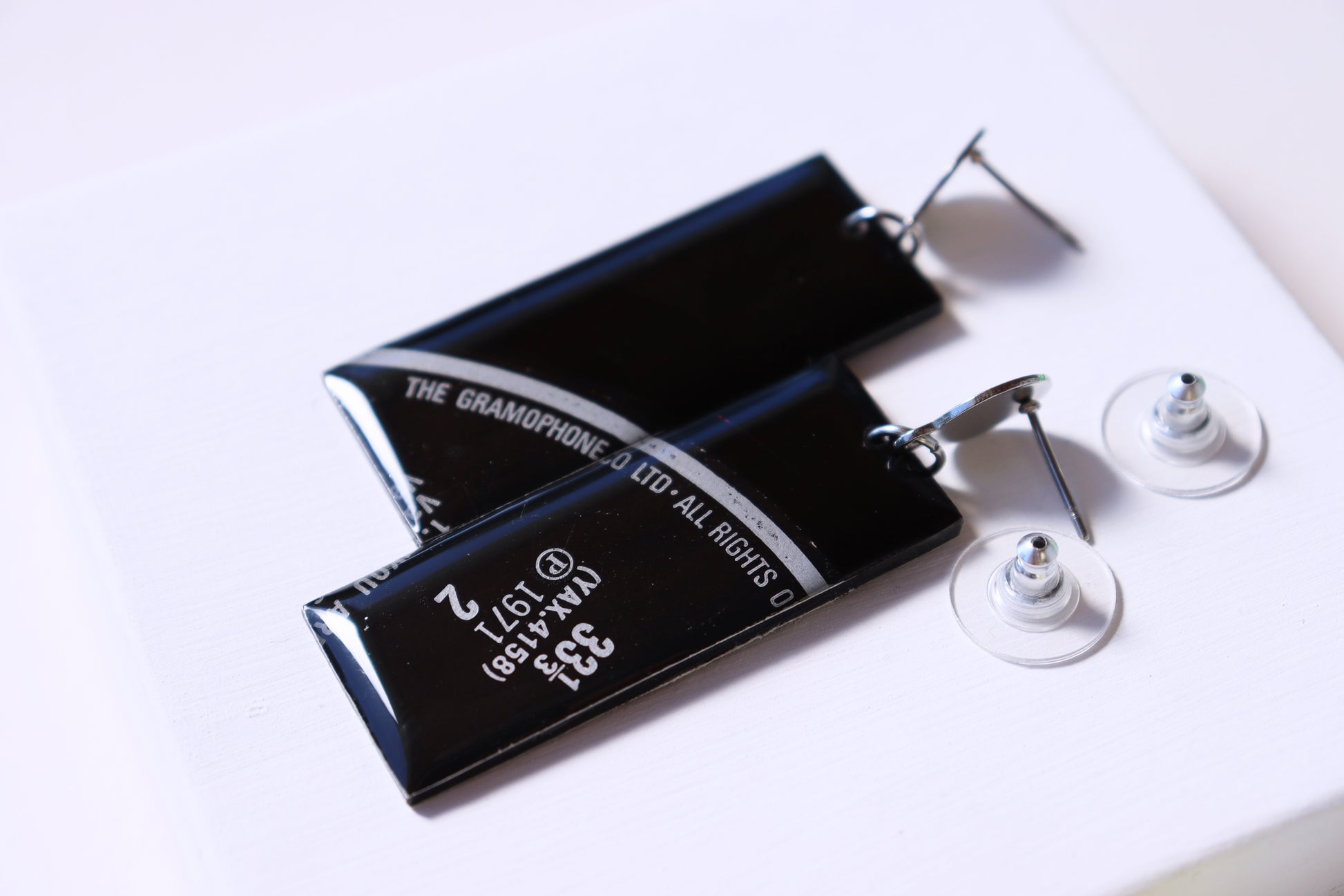 1971 / 33 1/3 / The Gramophone / Eco chic black geometric vinyl record earrings / ONE OF A KIND