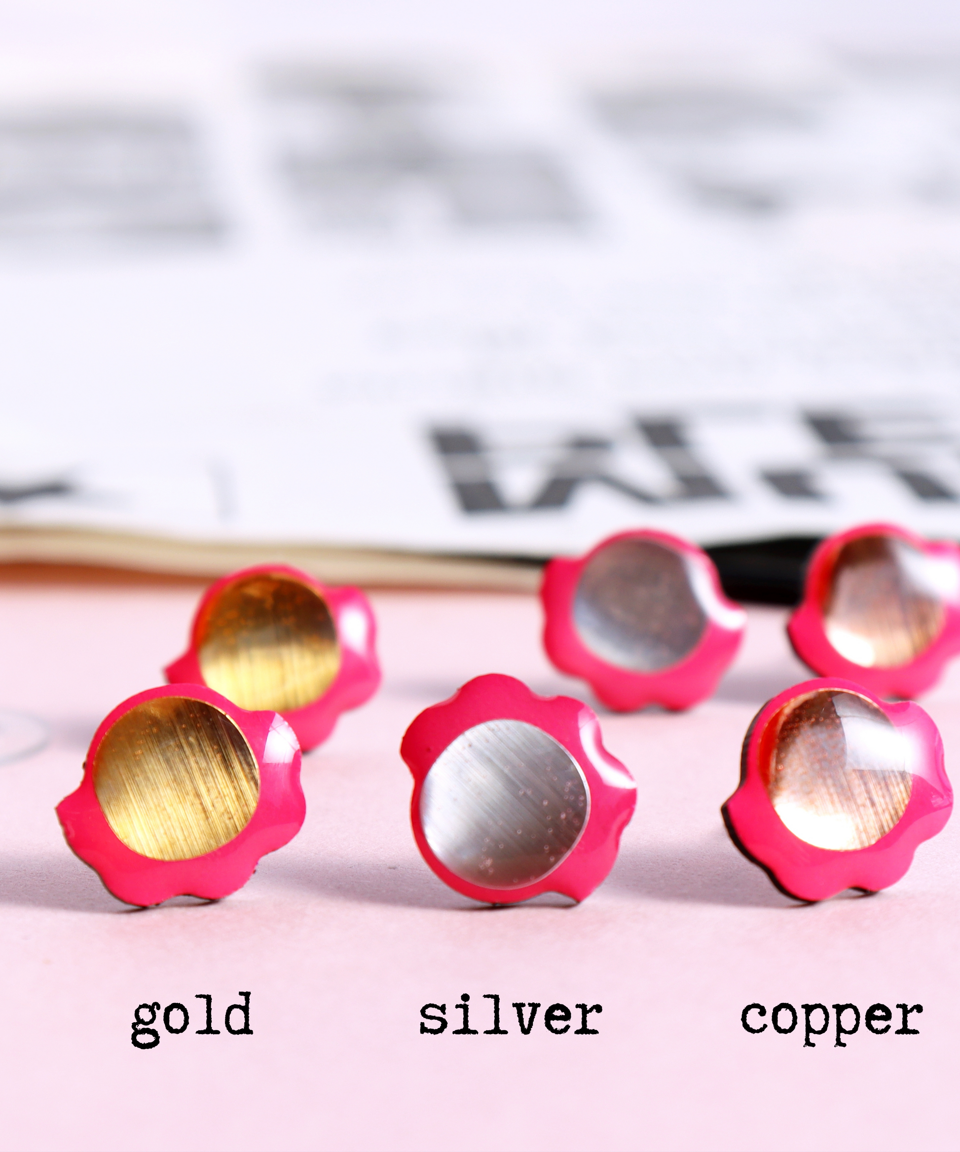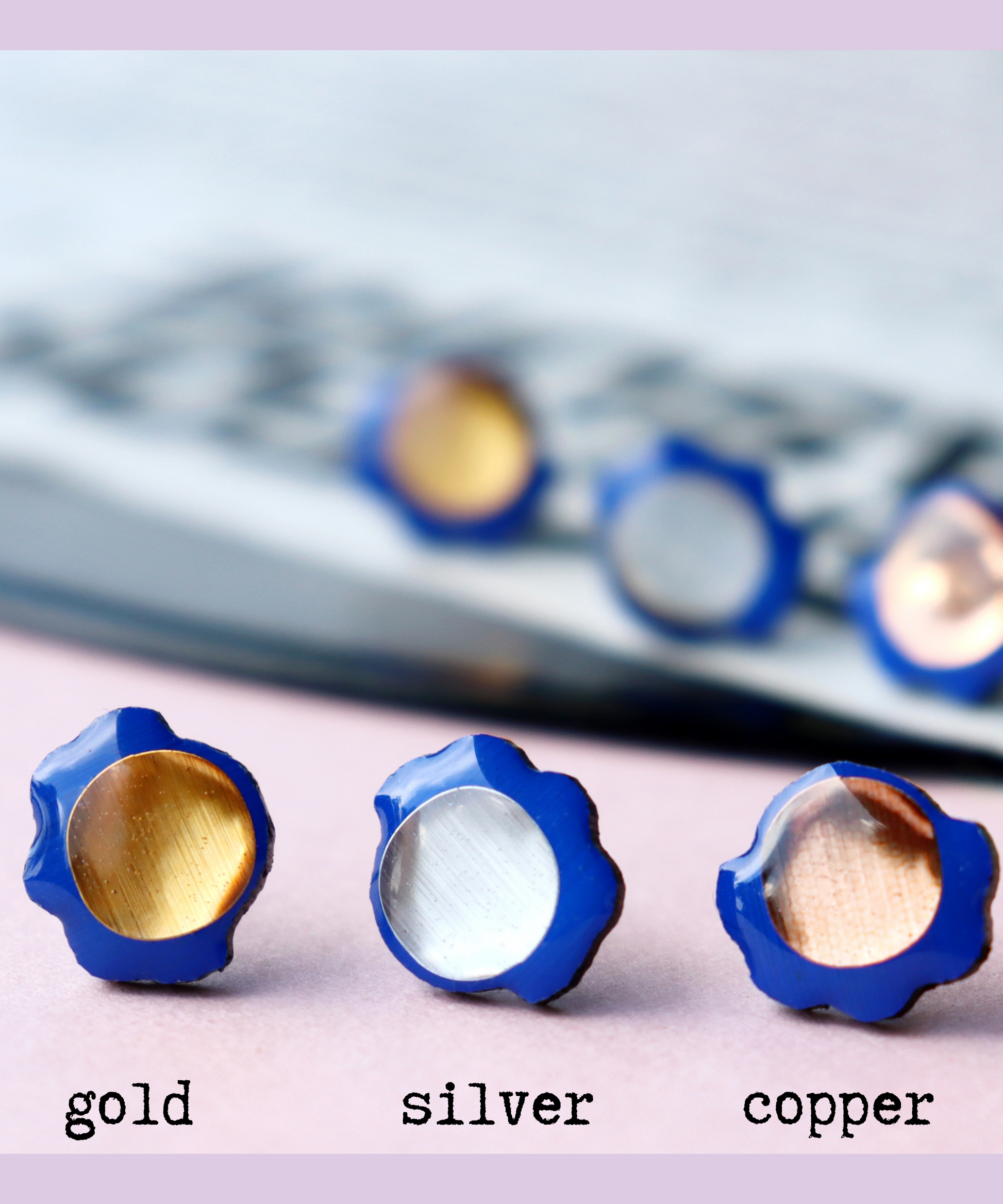 The Froufrou recycled vinyl record studs are made from an old record that was headed for landfill. Oh you will love how the light dances over the metallic details.