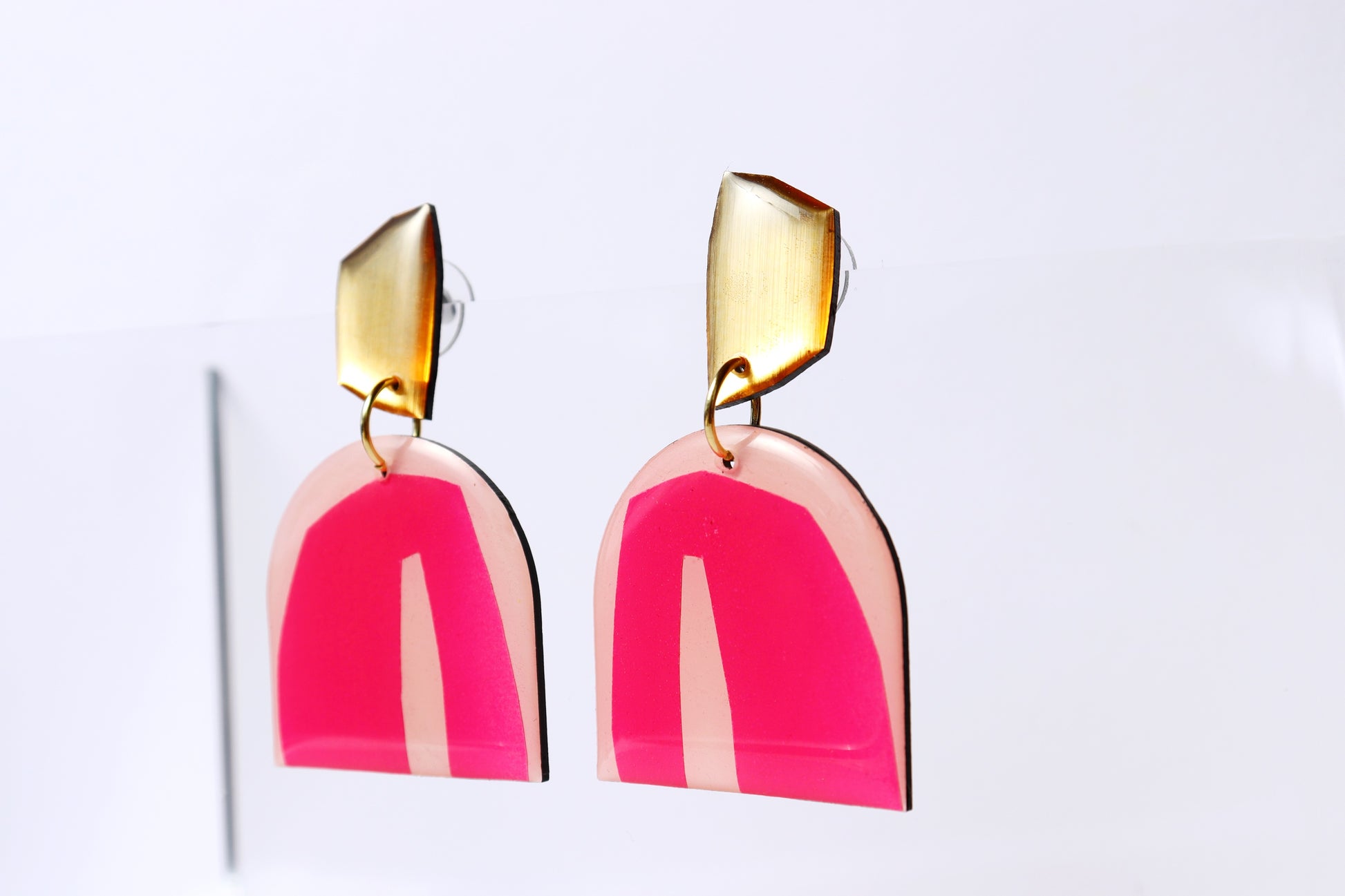 The bold PATTI dangles in fuchsia and gold are upcycled from an old vinyl record that was headed for landfill. Oh you will love how the light dances over the gold detail for that subtle touch of glam. They are a great present for vinyl lovers, sustainable fashion enthusiasts or anyone on the lookout for that bold unique handmade accessory.