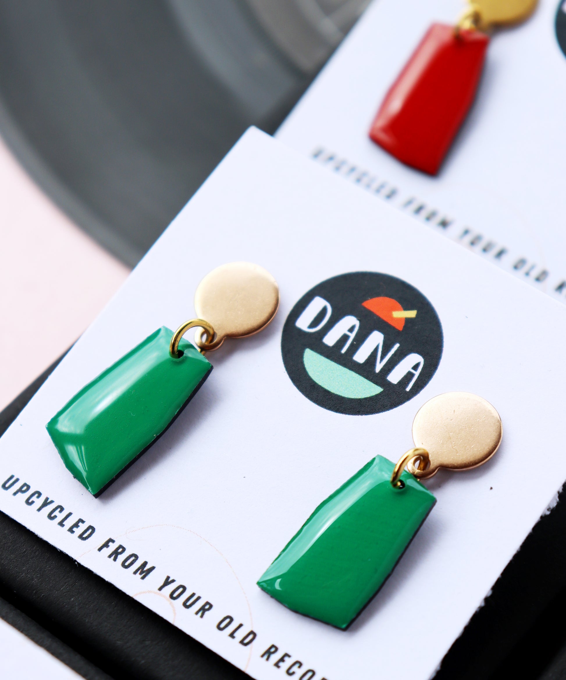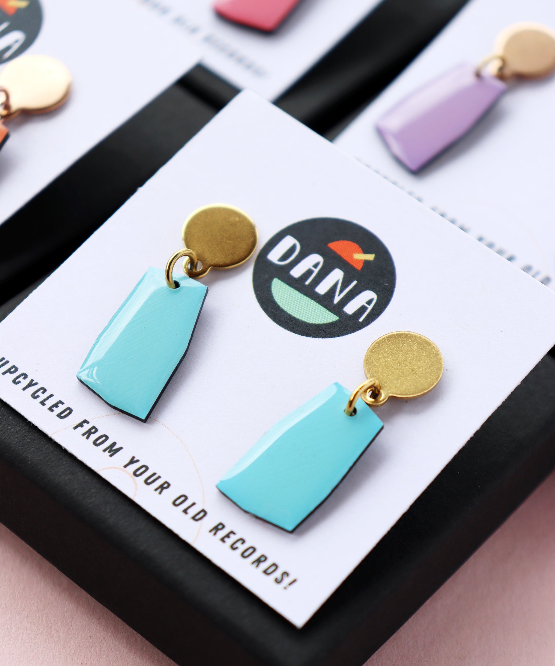 Upcycled from your old vinyl records, MINNIE no.2 will bring that fun colourful pop of colour to your outfit. This design is a fab present for the vinyl enthusiast in your life or the lover of quirky and unique art jewellery or innovative upcycled design. All pieces are slow made with intention in my little home studio in Co. Kerry, from vinyl records saved from ending up in landfill. Yup, trash has never looked better.